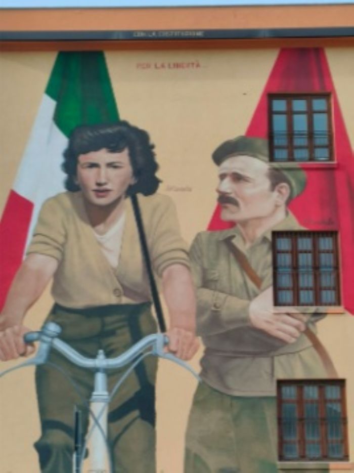 Il murale raffigura la staffetta partigiana modenese Olema Righi "Wanda" e il comandante partigiano Pompeo Colajanni "Barbato". Due simboli dell'unità nazionale nella lotta al nazifascismo e, al contempo, riconoscimento del ruolo fondamentale svolto dalle donne in quella fase storica. E c’è in questo murale anche la conferma del grande contributo di donne e uomini del Sud alla Resistenza.